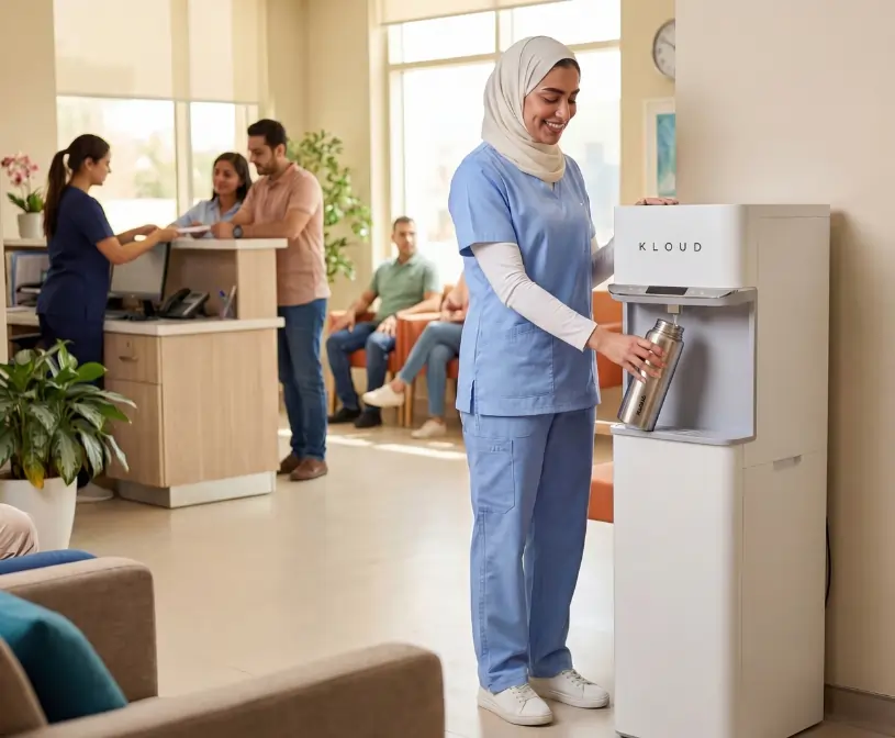 Transform your clinic or hospital into a more sustainable space. By choosing KLOUD, you provide patients and practitioners with refreshing, perfectly filtered water.