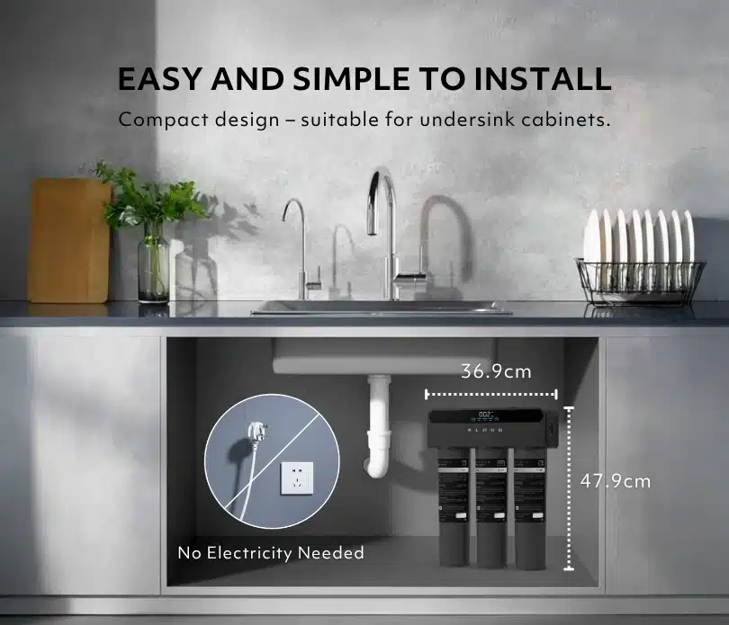 Experience pure, great-tasting drinking water with this powerless under-sink RO filtration system, engineered for efficiency, sustainability, and premium performance.