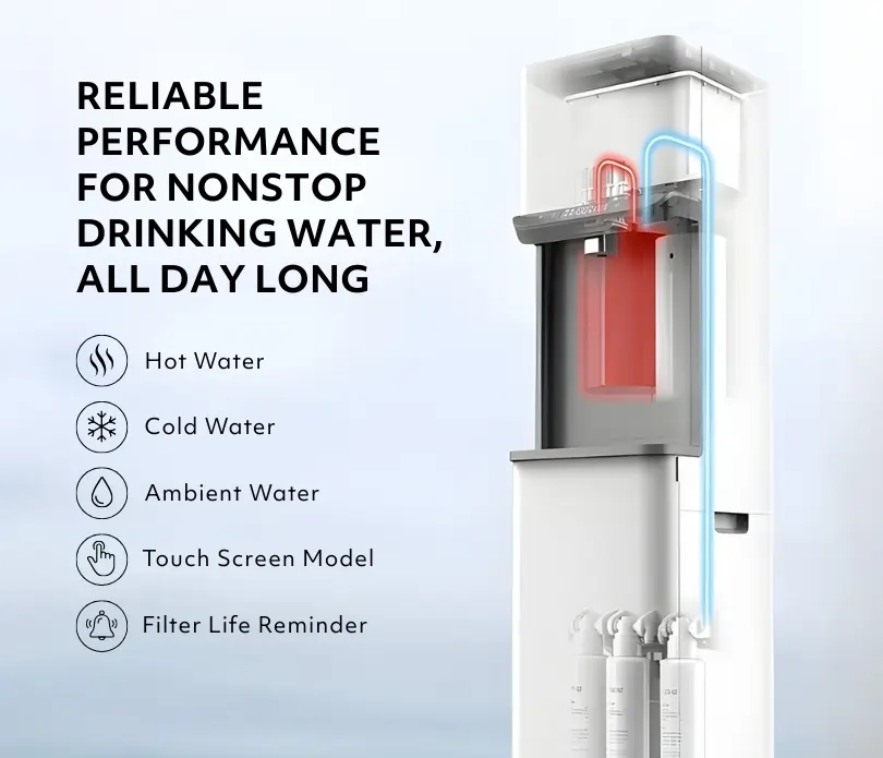 Elevate your hydration experience with the Tera One Water Dispenser, designed to provide pristine, filtered water on demand in any professional setting. Combining an elegant vertical design with robust, commercial-grade performance, this sophisticated unit delivers instant hot, cold, and ambient water straight from your municipal supply.