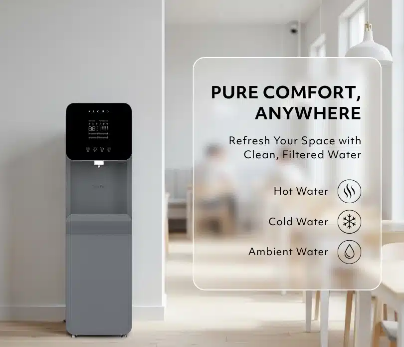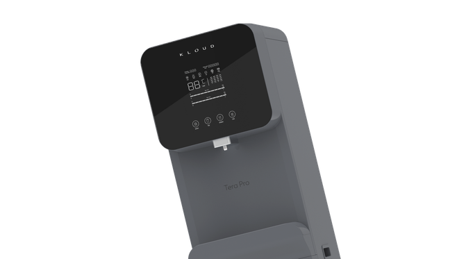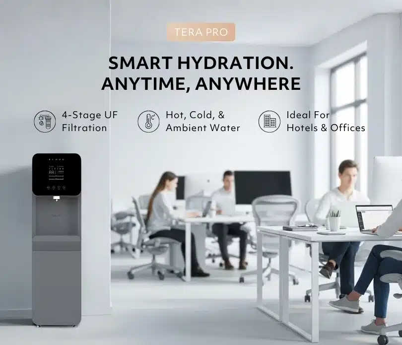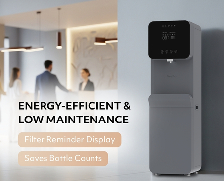 The Tera Pro is an elegant floor-standing smart hydration dispenser designed for modern offices,