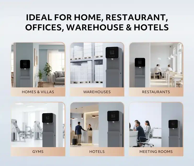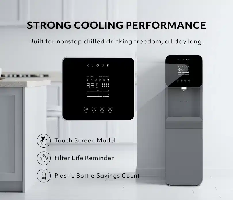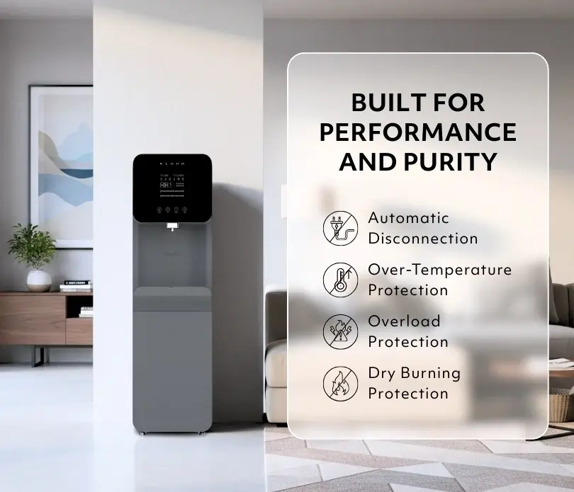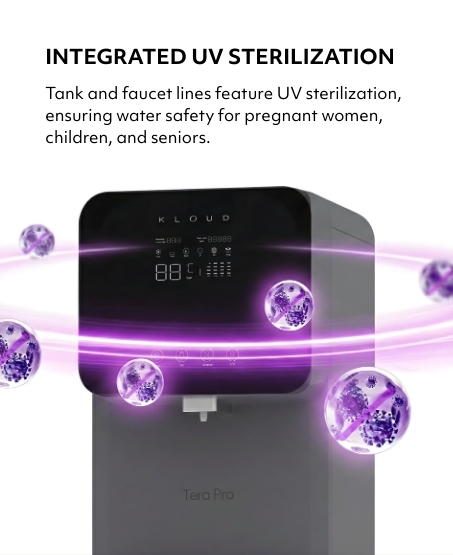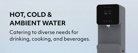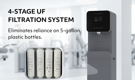 hotels, and public spaces. It provides instant access to hot, cold, and ambient water through a built-in 4-stage ultrafiltration (UF) system that removes impurities and bacteria while retaining essential minerals. The system is energy-efficient, low maintenance, and features a user-friendly filter replacement process.
